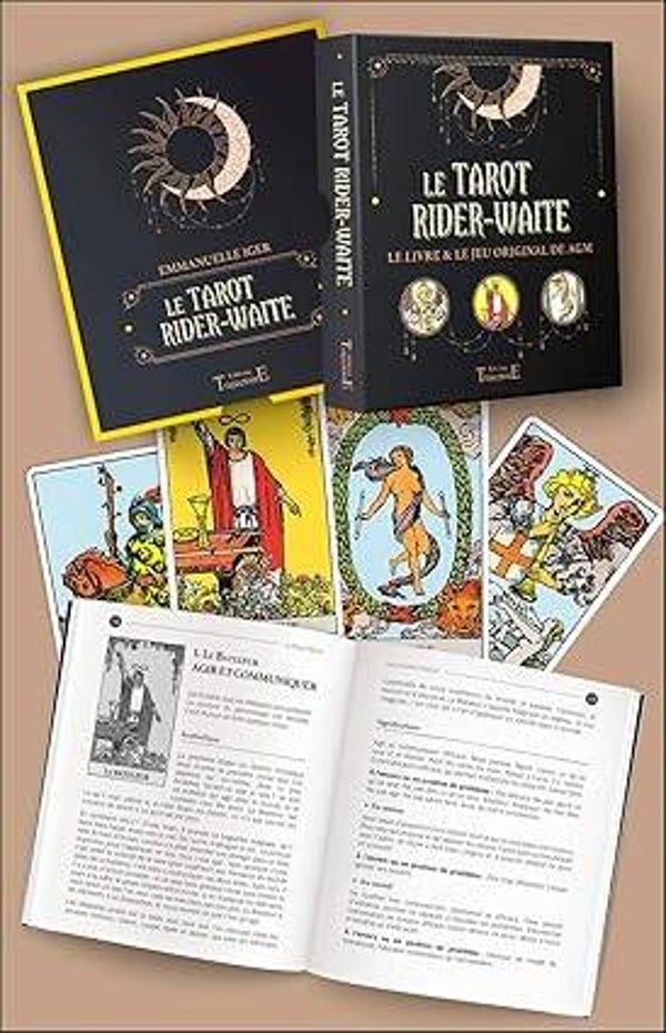 Le Rider-Waite est le tarot le plus utilisé au monde. Sa structure est la même que celle du tarot de Marseille ; cependant, ses cartes mineures figuratives le rendent intuitif et facile d’accès. C’est un puissant guide de développement qui permet de mettre en évidence des mécanismes inconscients afin de mieux se comprendre, faire les bons choix, et se bâtir un avenir harmonieux. L’ouvrage d’Emmanuelle Iger fournit une description détaillée des arcanes majeurs et mineurs, leur symbolique et interprétation : tirage à trois cartes ou tirage en croix pour répondre à une question précise, tirage relationnel ou tirage de choix pour évaluer une situation complexe et enfin tirage de la roue astrologique ou de la croix celtique pour susciter une réflexion plus générale. Ce coffret contient le jeu original de 78 lames « Premium Edition » de 1909 créé par A.E. Waite et Pamela Colman Smith publié par AGM-Urania.